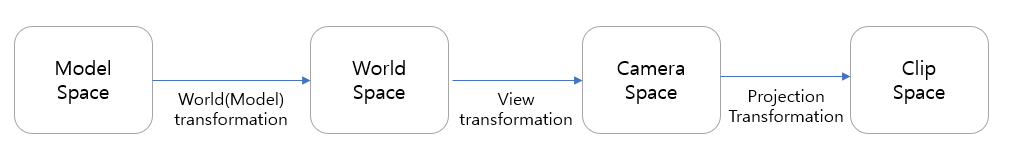 즉, MVP(Model-View Projection) 행렬인 만큼, 총 3가지의 변환이 이루어지고 그 각각의 역할이 있다.