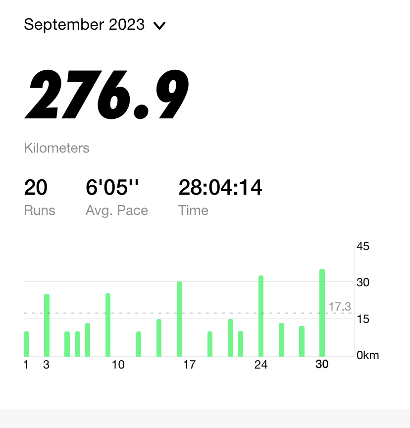 드디어 30k 돌파! 9월은 주말마다 lsd 훈련에 집중했다. 이때는 뛸때는 몰랐는데 뛰고나서 집에갈때 10분이면 걸어갈 거리를 거의 20분 걸려서 기어갔다.. 난 lsd 하고나면 왜이렇게 다리 뒷면이 땡기는지 모르겠다. 어쨌든 늘어나는 거리와 함께 완주할 수 있다는 자신감도 생겨나는중!