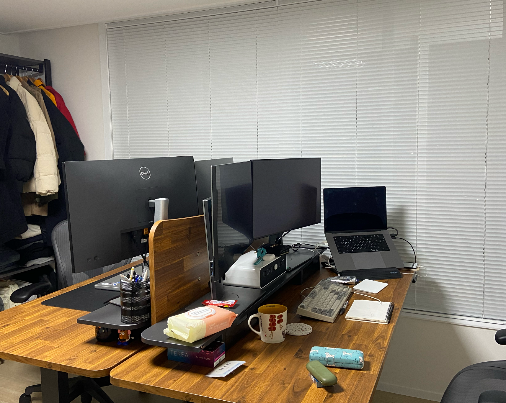 서재에는 블라인드를 달아놨는데 블라인드로 가려놔도 블라인드 자체에 구멍이 송송 나있어서 이렇게 바깥풍경이 살짝 보인다.